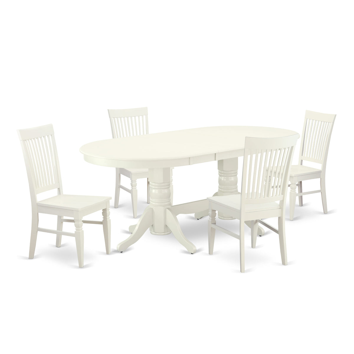 VAWE5-B59-1 Butterfly Leaf 5-Piece Dining Ensemble with Oval Table & 4 Chairs, 40x76, White