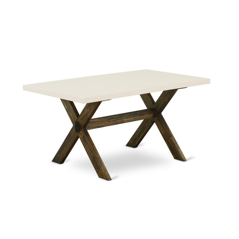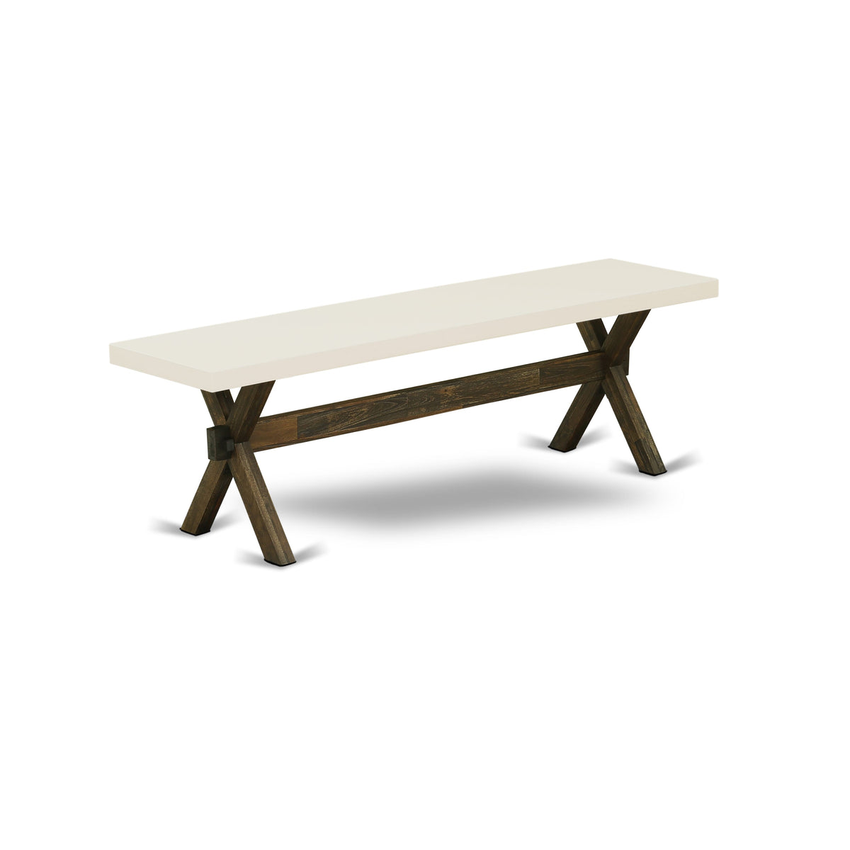 This dining room table set is built to provide elegance of charm to any dining room. This 6-Pc kitchen table set contains a kitchen table and a wood bench with 4 matching padded chairs. Our dining set adds some simple and modern beauty to your home. Ideal for dinette, kitchen, and dining areas, this dining room set seats up to 6 people with a dining room table great for family style dinners, and meals with friends. This dining table set will increase the elegance of any dining area with its ageless design. This wooden kitchen table has a Linen White Table Top and Distressed Jacobean finish X-Style Legs. These parson chairs have Light Beige Linen Fabric Seat and Sand Blasting Antique Walnut Wooden Chair Legs. The padded chairs include a Linen Fabric seat and Stylish Chair Back, while the back of the padded chairs is outlined in a wooden frame and the center of the back is padded. We have created this dining set with the help of highly experienced carpenters, who generate a smooth and top quality finish to this kitchen table set. Our dining room set is quite simple to clean and always provides an elegant appeal. Keep Enjoy with East West Furniture.