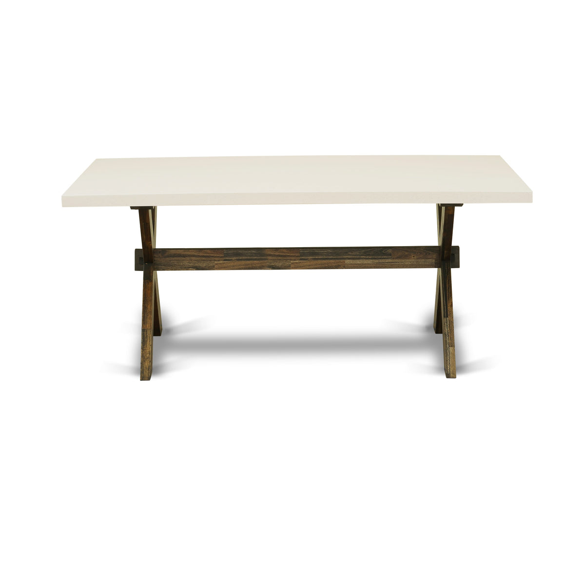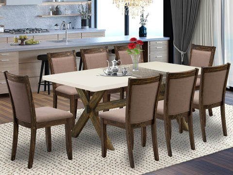 This 9-piece table set contains 1 dining table and 8 matching modern dining chairs. The modern dining set is constructed from fine RubberWood for good quality and durability. A rectangular-shaped mid century modern dining table is built in a sophisticated style with distinct features and linen fabric padded mid century modern dining chairs will attract everyone who comes to the dining area. The dining table has X-style legs to offer the best steadiness in dinner. The innovative and elegant design of the modern dining set easily blends in any home. The Padded seat of the wood dining chairs is made of linen fabric that raises the dining table design. Our fashionable table set is quite simple to clean by using a damp cloth and always offers an incredible appeal. The installation process of our luxurious kitchen table set is not difficult and simple to use. Each dining room set comes conveniently with easy-to-follow instructions and all essential equipment included. You simply need to follow the procedures in the handbook to complete the installation in a short time.